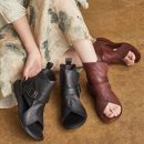 Discover handcrafted comfort with these British-style genuine leather Roman sandals. Featuring a soft flat sole, breathable peep toe design, and high-top wrap for ankle support, these sandals are the perfect fusion of fashion and function. The durable rubber outsole ensures slip resistance, while the classic metal buckle adds a touch of vintage charm. Ideal for casual wear, summer walks, or expressing your unique style.